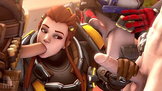 Hot 3d animated milf with massive boobs takes cum in her mouth and pussy in double climax fun