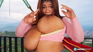 Amazingly curvy Latina Angie Bravo puts on a show outdoors