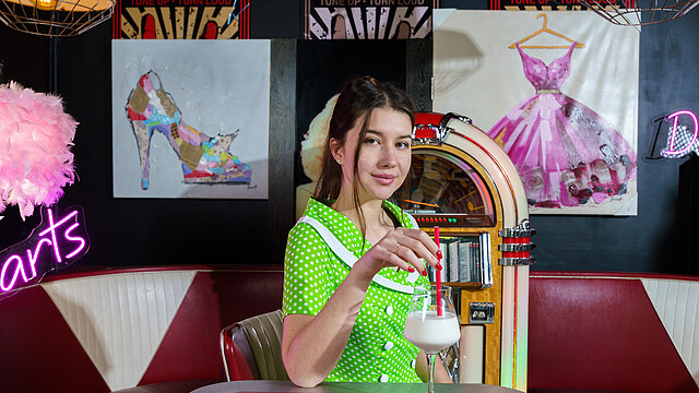 Cute brunette Jolie Butt spreading herslef in the bar